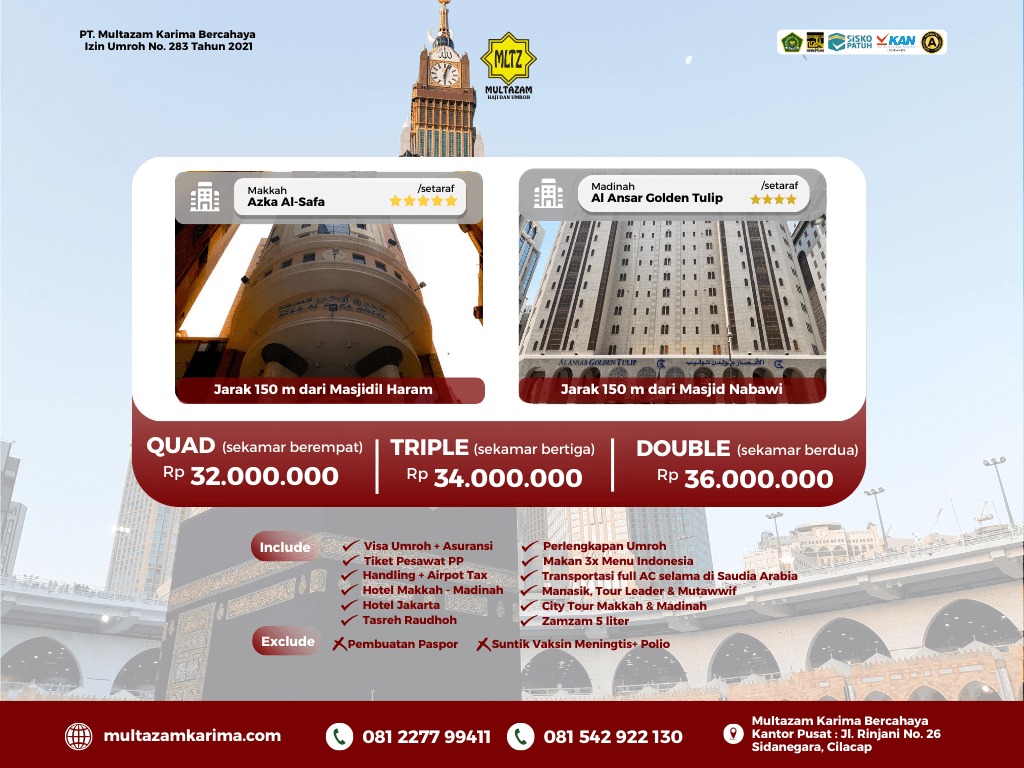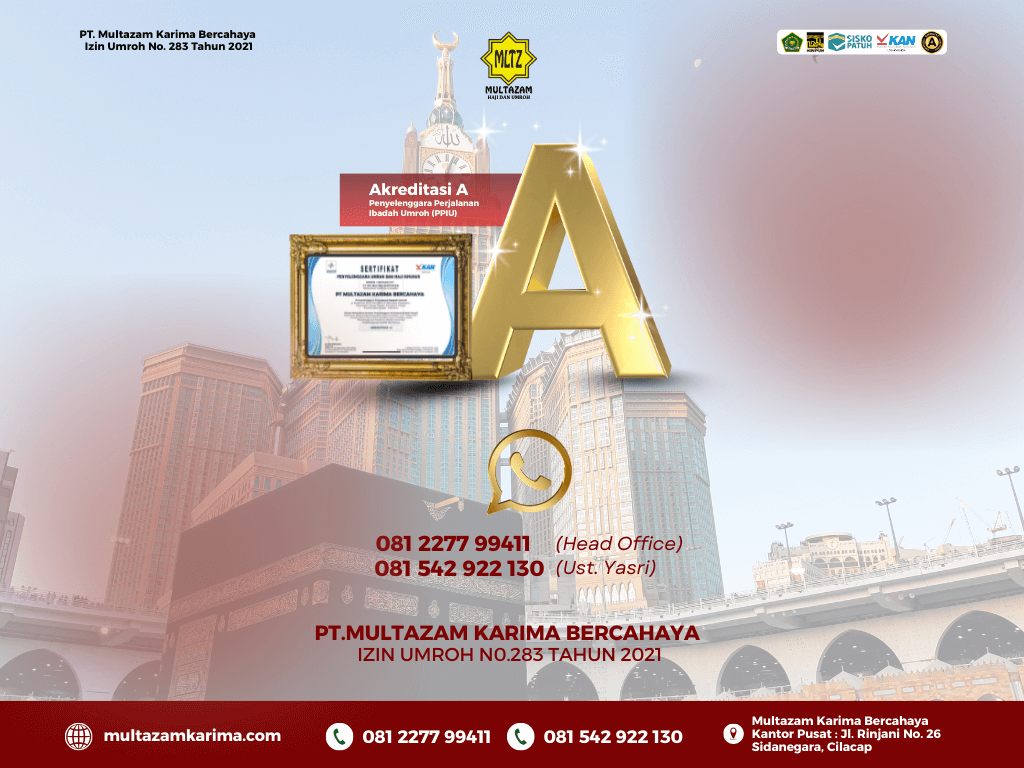 - Semua dokumen persyaratan Umroh diserahkan paling lambat 30 hari sebelum keberangkatan.